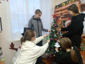 С девушками в творческой мастерской Большеключевской библиотеки мастерили из бумаги рождественских ангелочков. Такие трепетные, воздушные и чудесные ангелочки получились у девушек! Их уютно разместили на библиотечной ёлочке, которая стала ещё краше.