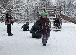 Зимние каникулы - радостное и прекрасное время для детворы. На улице порхает снежок, лёгкий морозец. Большеключевская библиотека с детьми весело, увлекательно, с пользой для здоровья провела время на улице. Играли в различные игры на смекалку, на ловкость: кто быстрее поднимется на горку, кто дальше проедет с горки, кто быстрее привезёт товарища.