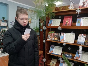 Новогодняя акция в центральной библиотеке - это традиция.Наши читатели, посетив одними из первых в наступившем году библиотеку, кроме книг получили тёплые новогодние пожелания в виде поздравительной открытки.