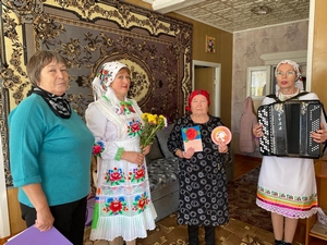 В преддверии Дня пожилых Мустаевская библиотека совместно с домом культуры поздравила труженицу тыла Александру Григорьевну Игнатьеву и супругов Кузнецовых Виктора Григорьевича и Зинаиду Васильевну из деревень Мустаево и Алдиярово.