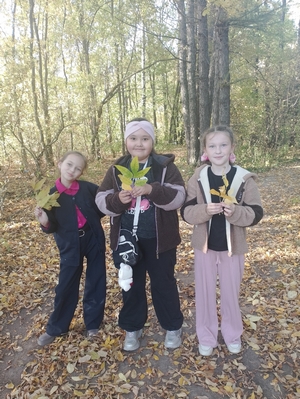 В ходе экскурсии собирали букеты из осенних листьев, вспомнили названия деревьев, с которых они облетели.