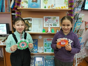 С девушками в творческой мастерской Большеключевской библиотеки мастерили из бумаги рождественских ангелочков. Такие трепетные, воздушные и чудесные ангелочки получились у девушек! Их уютно разместили на библиотечной ёлочке, которая стала ещё краше.