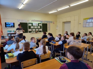 Урок памяти "Война. Блокада. Ленинград" мы провели для учащихся 4Б класса Сернурской средней школы №2 имени Н.А. Заболоцкого. Ребята узнали как люди защищали родной город, о народном ополчении, куда шли старшеклассники намеренно завышая свой возраст, о подвиге танкового командира Константина Ушакова.