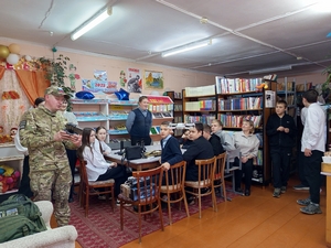 Каждый должен знать, что сильна Россия только тогда, когда она едина. Гость встречи рассказал о трудных боевых ситуациях и как удается с ними справиться; что происходит на передовой, о бытовых условиях, вооружении бойцов. Показал военную экипировку. Рассказал о дружбе и сплочённости тех, кто находится в зоне боевых действий, о наступательных и оборонительных действиях. В своем рассказе боец отметил, что для каждого участника СВО очень важна моральная поддержка родных и всего общества. Надо отметить, что Александр очень интересный собеседник, так захватывающе и просто рассказал обо всём, что можно просто заслушаться. Такое общение лицом к лицу очень важно для подрастающего поколения.